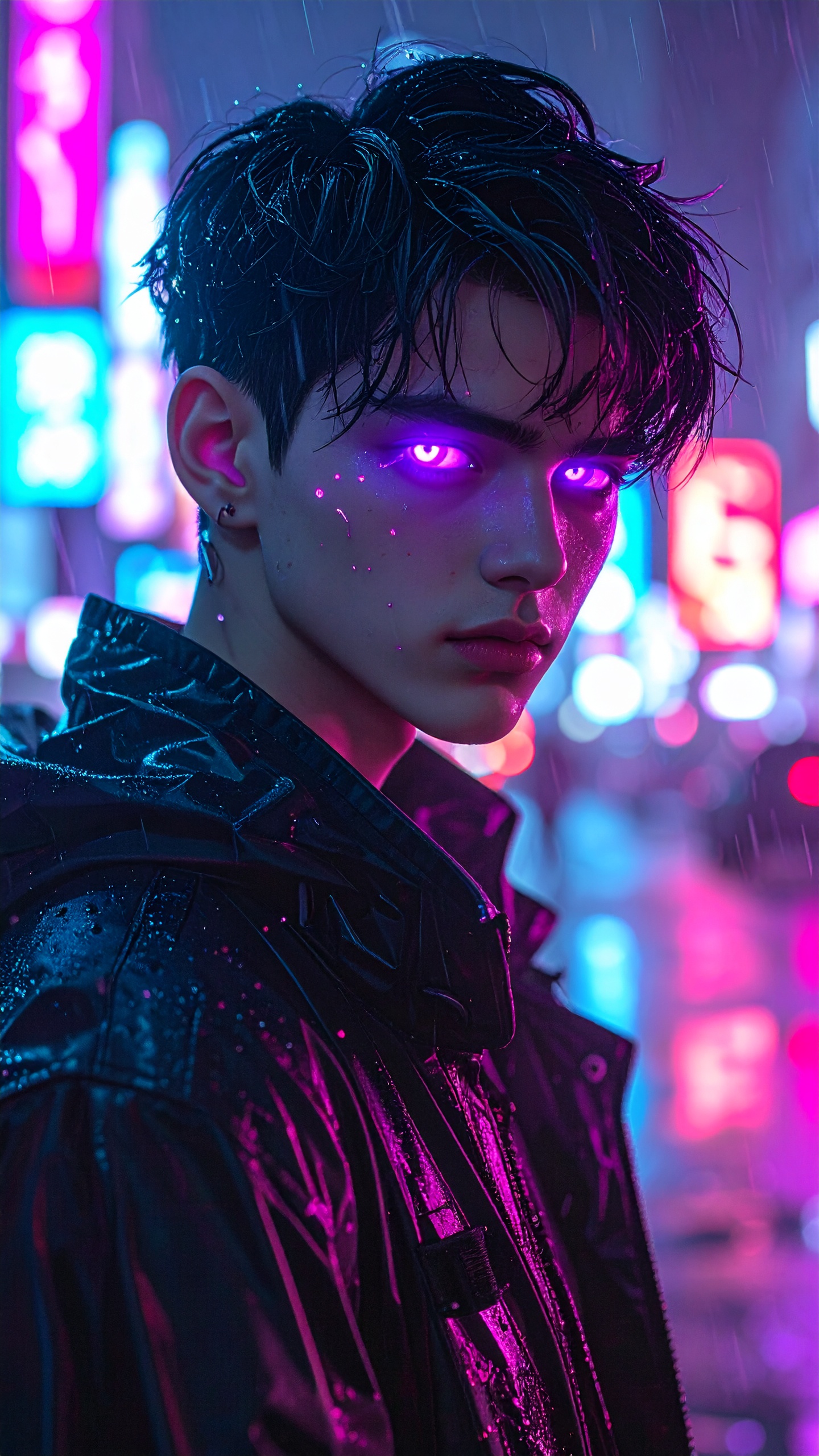 Anime Boy With Neon Glowing Eyes in Cyberpunk City at Night Purple And Cyan Reflections on Face Rain Atmosphere Leave a Comment / Anime / By DOWNLOAD wallpaper anime wallpaper anime 4k wallpaper anime hd wallpaper anime hd 4k wallpaper anime girl wallpaper anime aesthetic