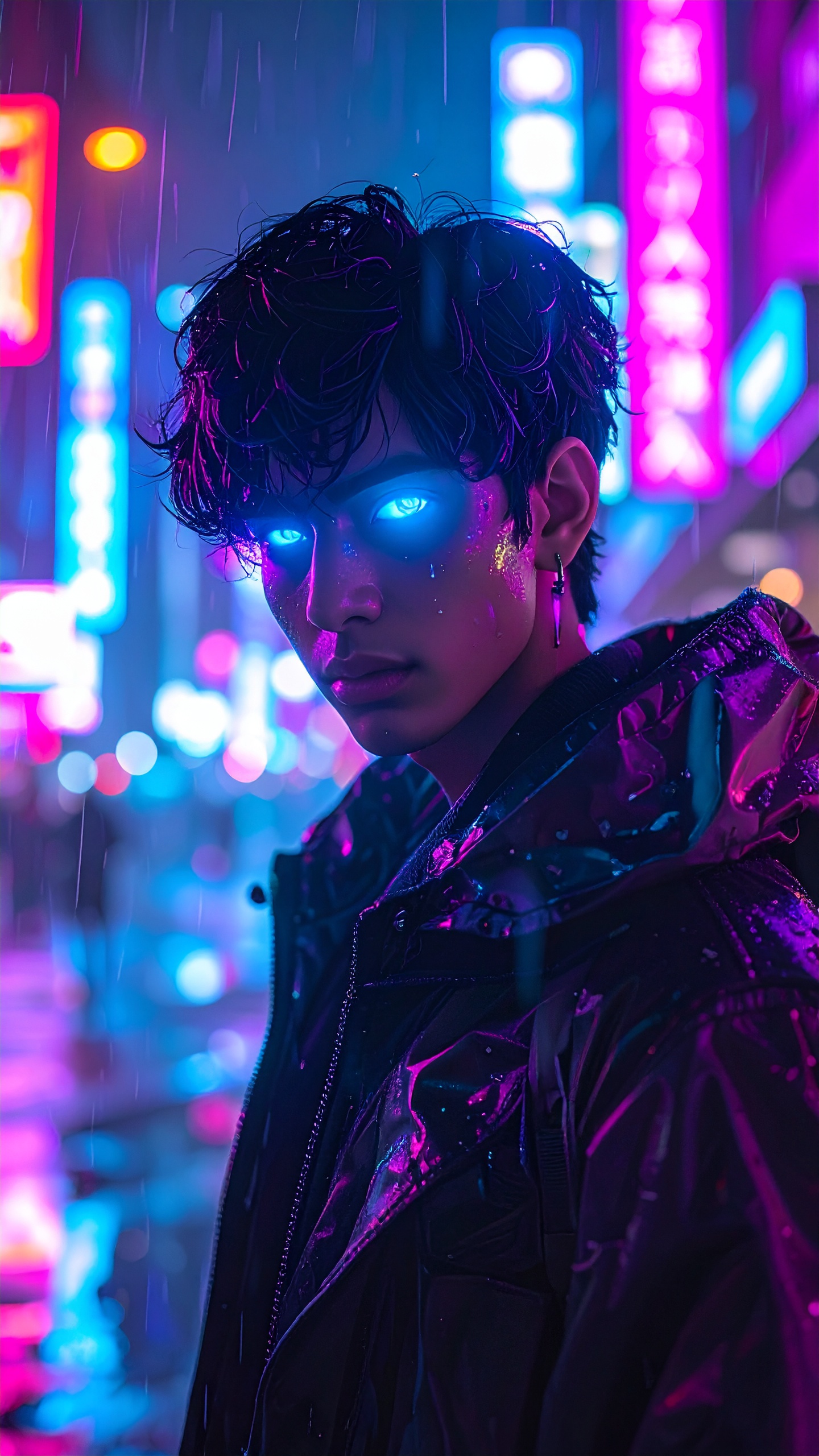 Anime Boy With Neon Glowing Eyes in Cyberpunk City at Night Purple And Cyan Reflections on Face Leave a Comment / Anime / By DOWNLOAD wallpaper anime wallpaper anime 4k wallpaper anime hd wallpaper anime hd 4k wallpaper anime girl wallpaper anime aesthetic
