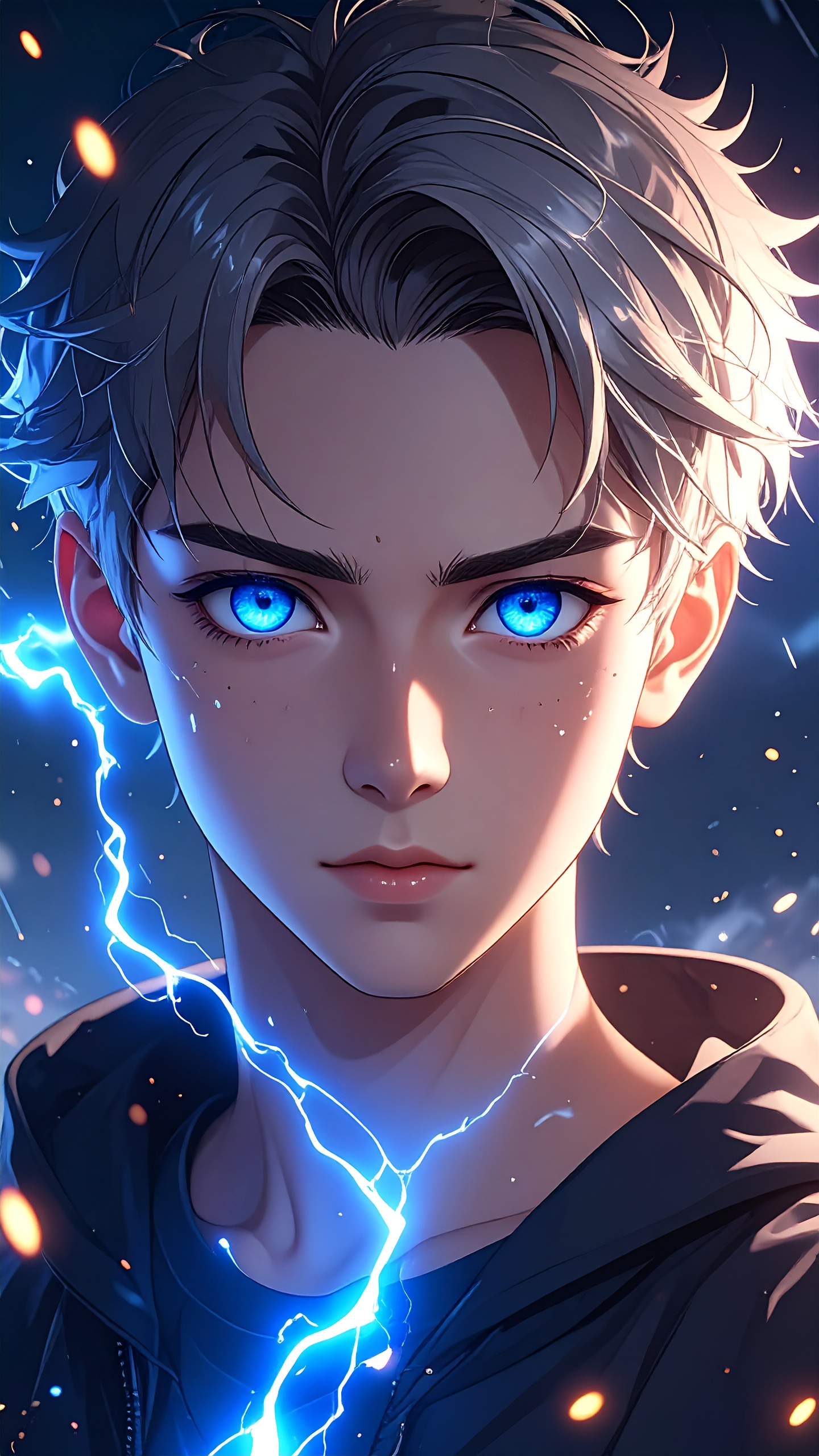 Anime Boy With Sharp Blue Eyes Glowing With Lightning Energy Electric Sparks Around Face, Leave a Comment / Anime / By DOWNLOAD wallpaper anime wallpaper anime 4k wallpaper anime hd wallpaper anime hd 4k wallpaper anime girl wallpaper anime aesthetic