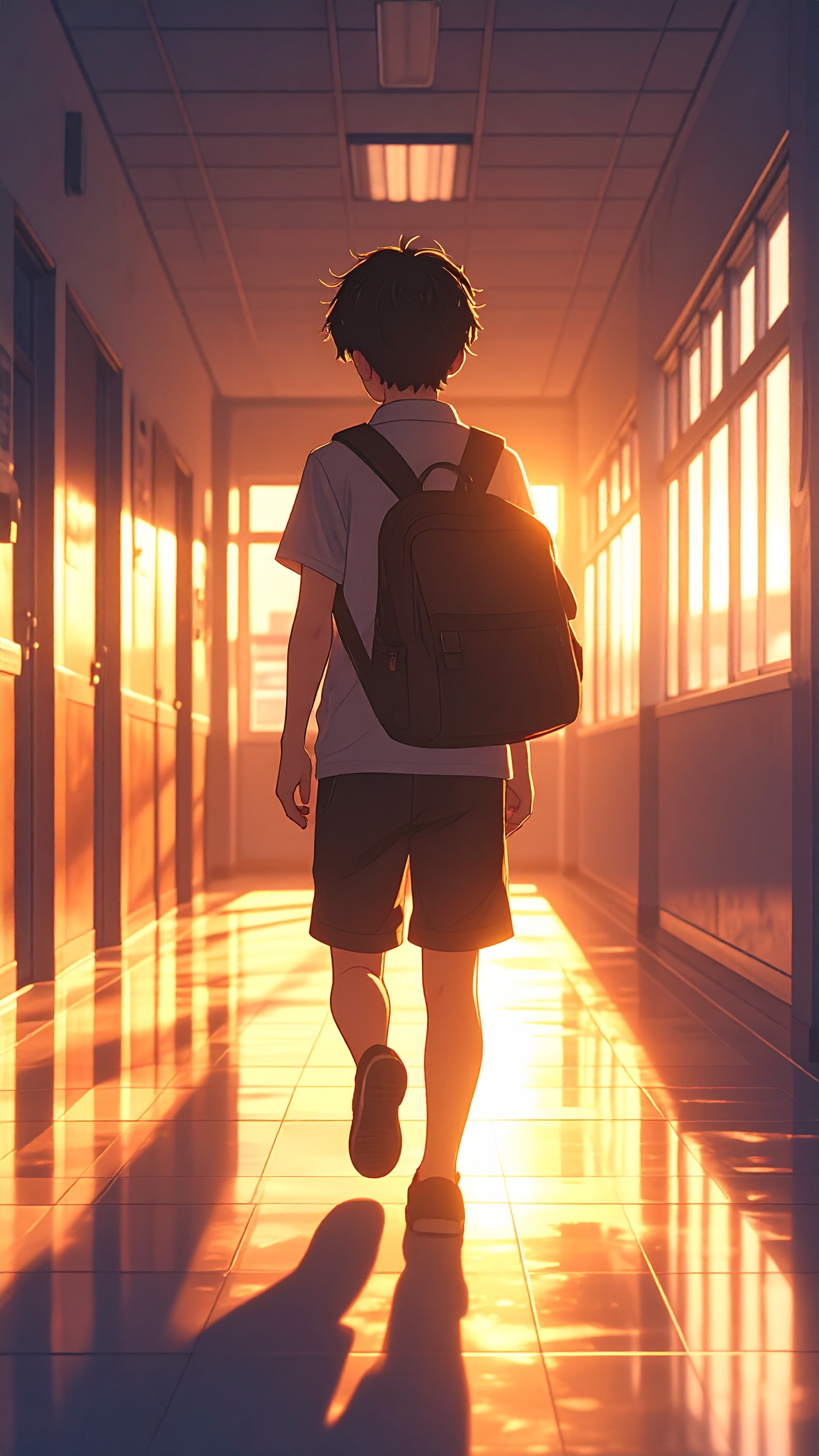 Sad Anime Boy Walking Through Empty School Hallway at Sunset Long Shadows Warm But Melancholic Light Emotional Atmosphere Detailed Background Leave a Comment / Anime / By DOWNLOAD wallpaper anime wallpaper anime 4k wallpaper anime hd wallpaper anime hd 4k wallpaper anime girl wallpaper anime aesthetic